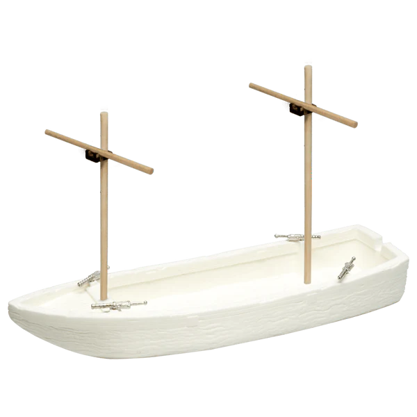 by Firelock Games. Kit contains: 9.5" x 3.5" Plastic Resin Hull, 4 Wooden Dowel for Masts & Spars, 6 Laser Cut Wooden Rigging Parts, and 4 Swivel Guns.